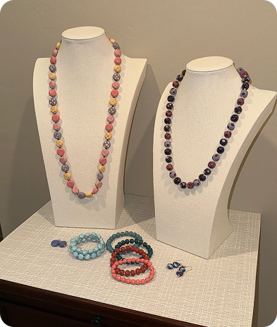 Coordinated Sets = Five of 30-, 22- & 18-inch sets (Necklace, wire bracelet & pair of earrings)