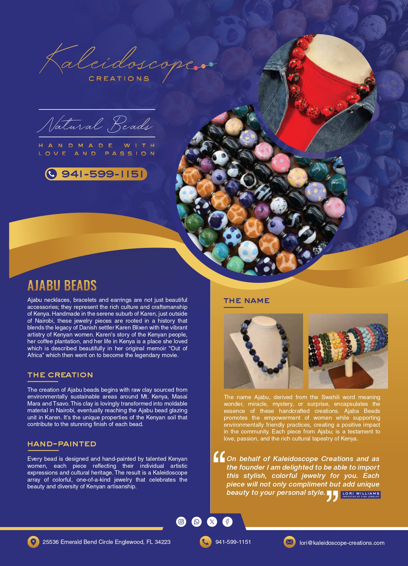 – A colorful flyer to proudly display in your store, sharing the story behind Ajabu Beads and their place of origin.